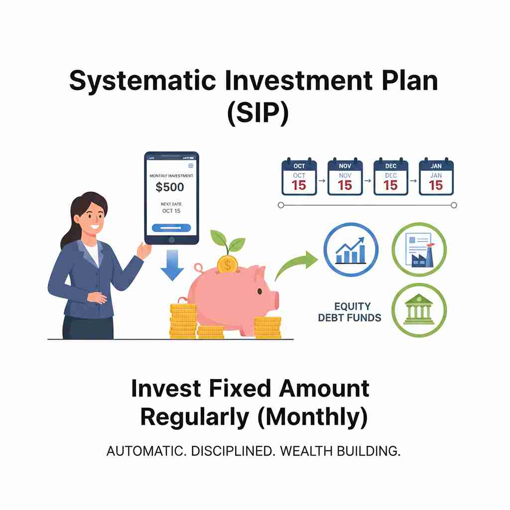 SIP (Systematic Investment Plan) allows you to invest a fixed amount at regular intervals (monthly or quarterly).